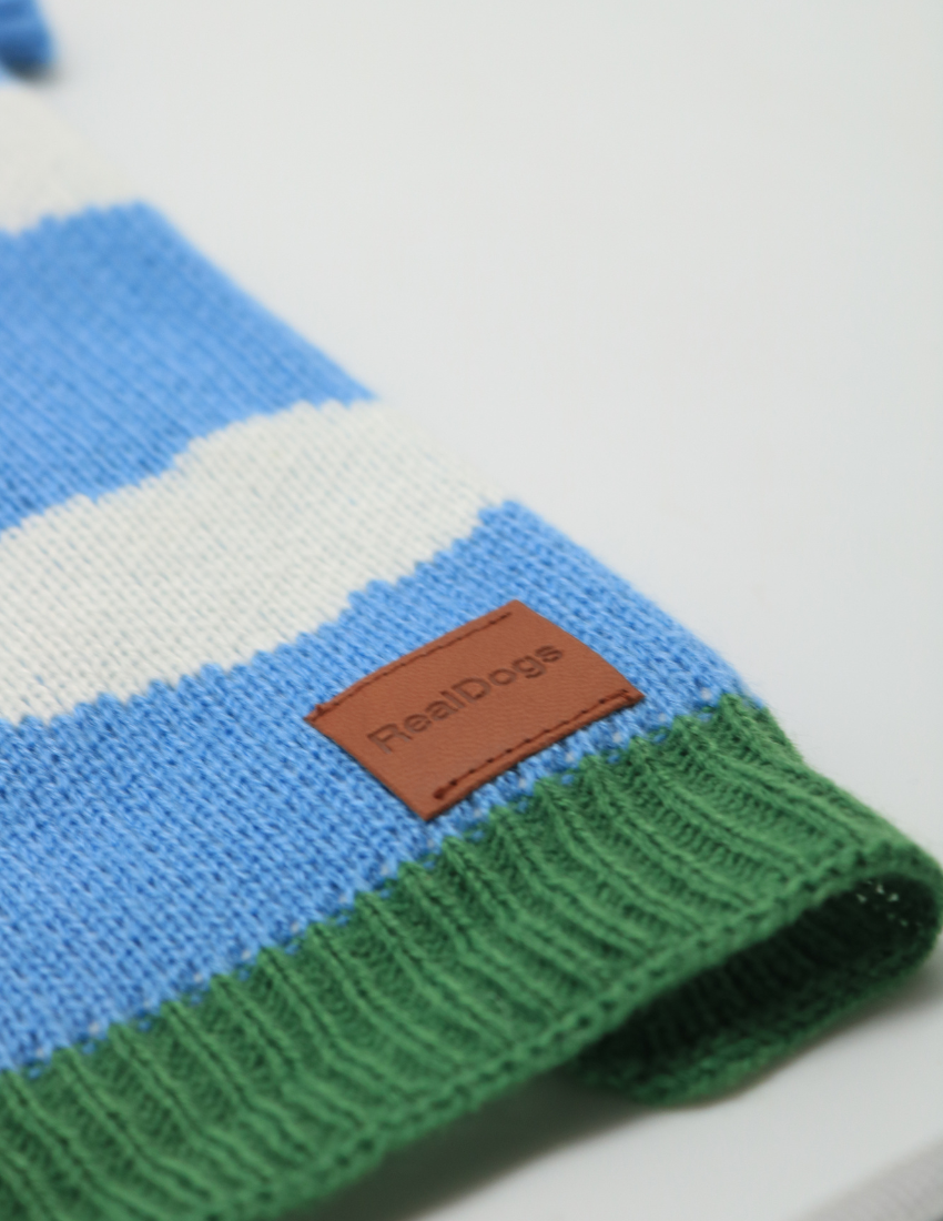 Este acogedor jersey tricolor combina un rico azul con un fresco verde tono verde. Con cuello alto y un ajuste elástico, está hecho tanto para acurrucarse como para salir a pasear con estilo.
